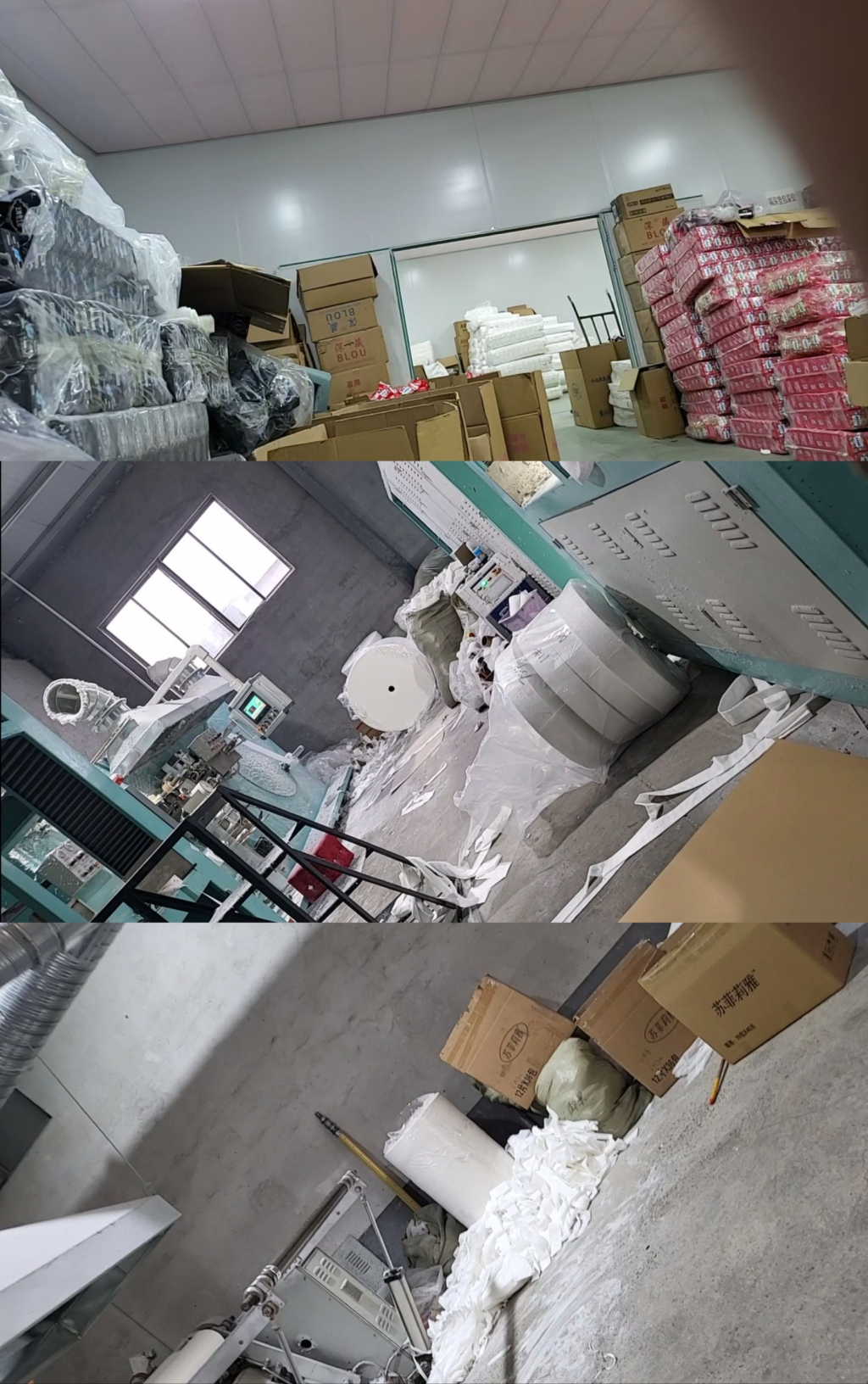 徐某梦表示,目前还在使用去年的库存外包装,因此生产厂家显示“山东洁舒宝”及其地址。不过,现在实际销售的产品,都由其他小厂生产,然后拉回老厂“山东百氏祥”包装。徐某梦还强调,新厂投产后,他们仍会将片条成品拉回老厂包装。“低端的,我们针对客户要求,一定也要做的。”他说。